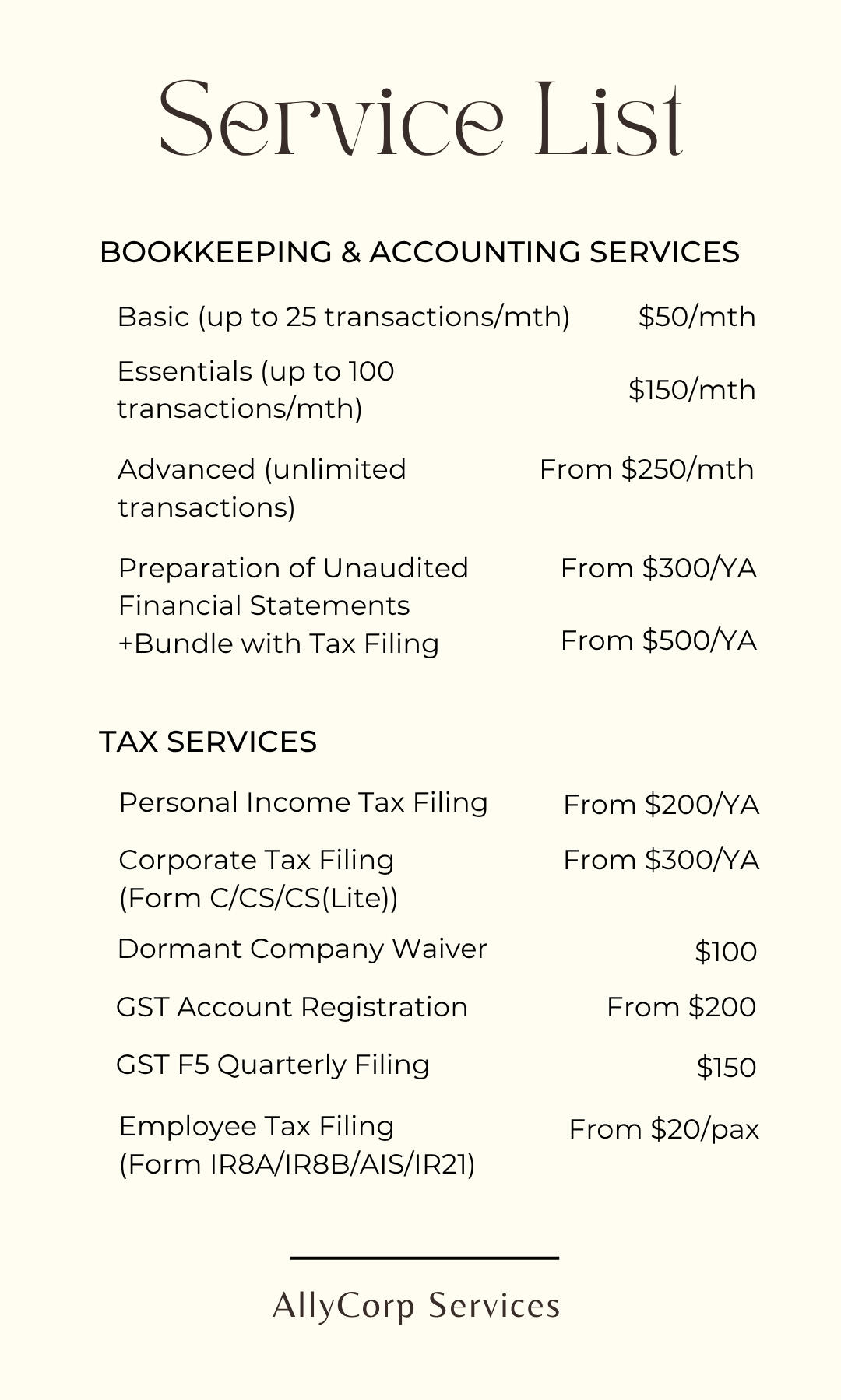 AllyCorp Services is founded by Samuel Ye, a former lawyer from a top-tier local law firm specialising in tax and corporate affairs. As a NUS graduate with First Class Honours, Samuel brings extensive experience advising international businesses, family offices, and SMEs. With his deep understanding of both corporate regulatory and tax matters, your business will be in safe and capable hands.We have successfully incorporated new companies for both local and foreign shareholders, filed successful tax returns and obtained $10k in tax refunds from IRAS, conducted share transfers within the same day, successfully obtained Employment Pass for foreign directors from MOM and successfully opened new corporate bank accounts for our clients.